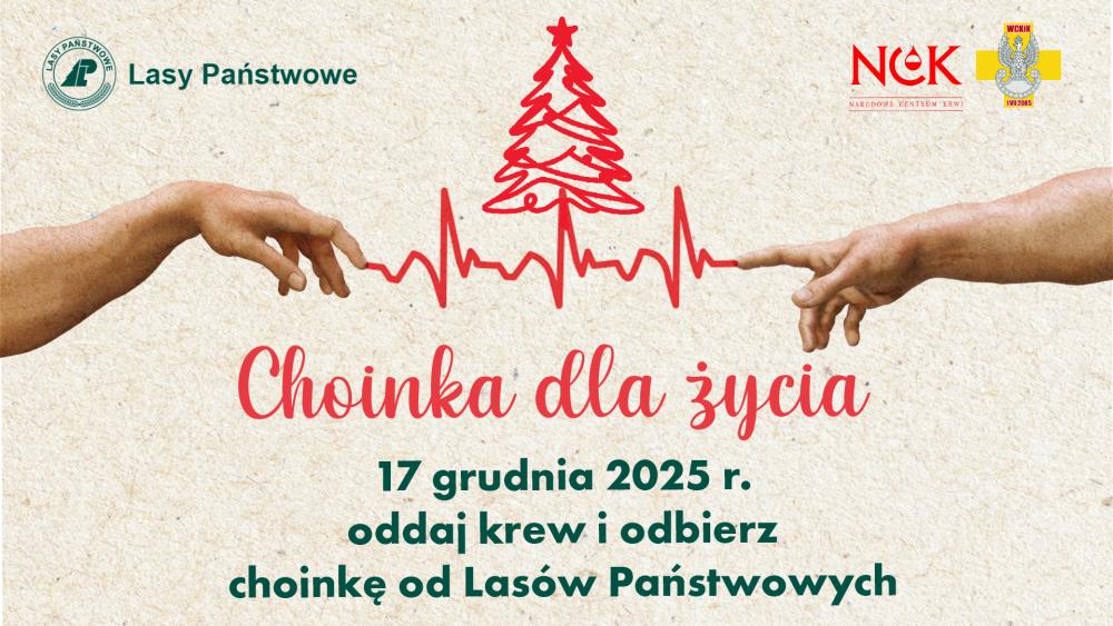 Akcja „Choinka dla życia”, organizowana po raz piąty, jest wspólną inicjatywą Lasów Państwowych i Narodowego Centrum Krwi. W tym roku zaangażował się w nią nowy partner: Wojskowe Centrum Krwiodawstwa i Krwiolecznictwa. Krew można oddawać 17 grudnia w jednym z blisko stu punktów, m.in. w regionalnych centrach krwiodawstwa i krwiolecznictwa, ich oddziałach terenowych i terenowych stacjach WCKiK. Wszystkim krwiodawcom leśnicy podziękują, wręczając świąteczne drzewko.