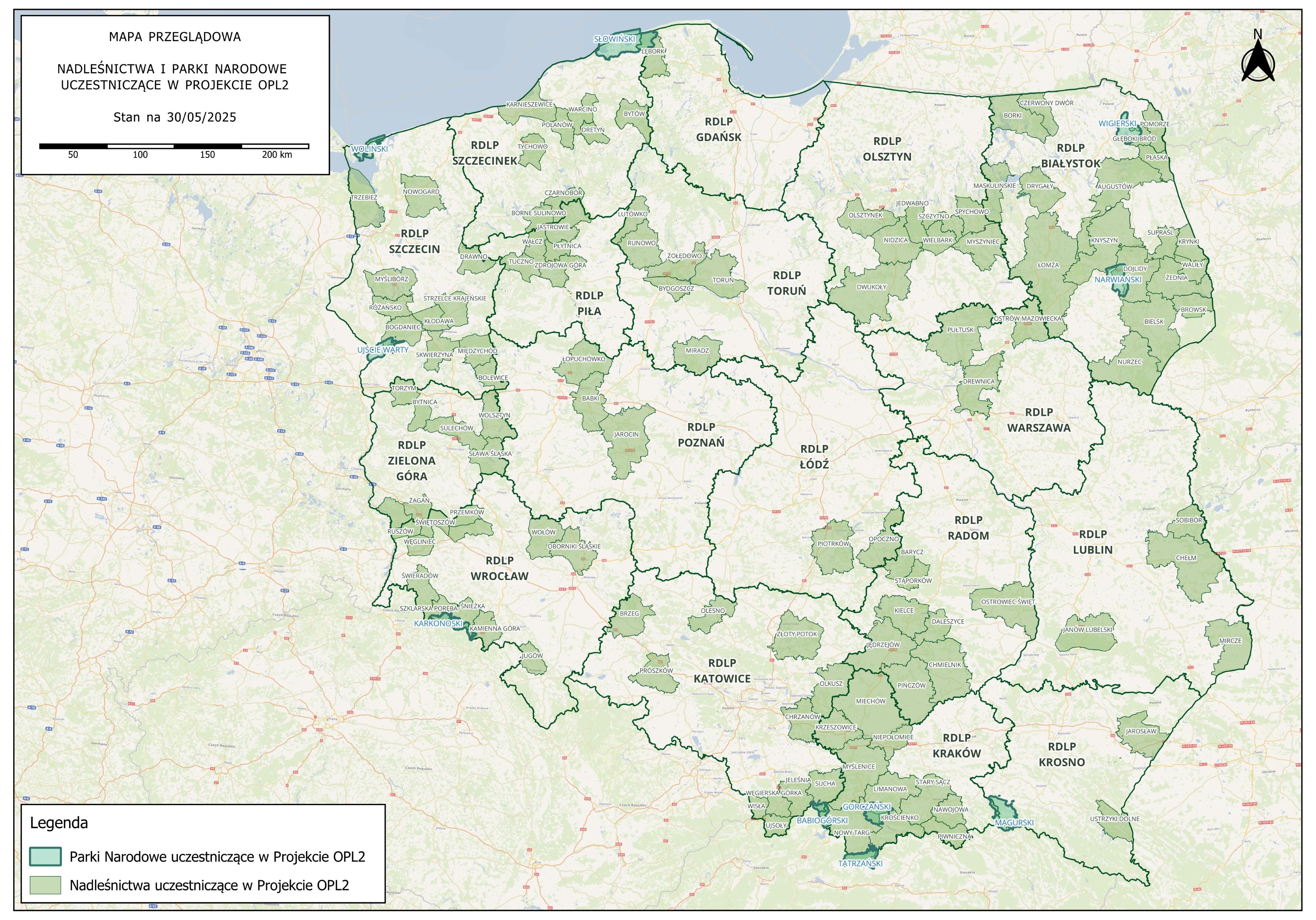 Mapa 1. Nadleśnictwa oraz parki narodowe biorące udział w projekcie